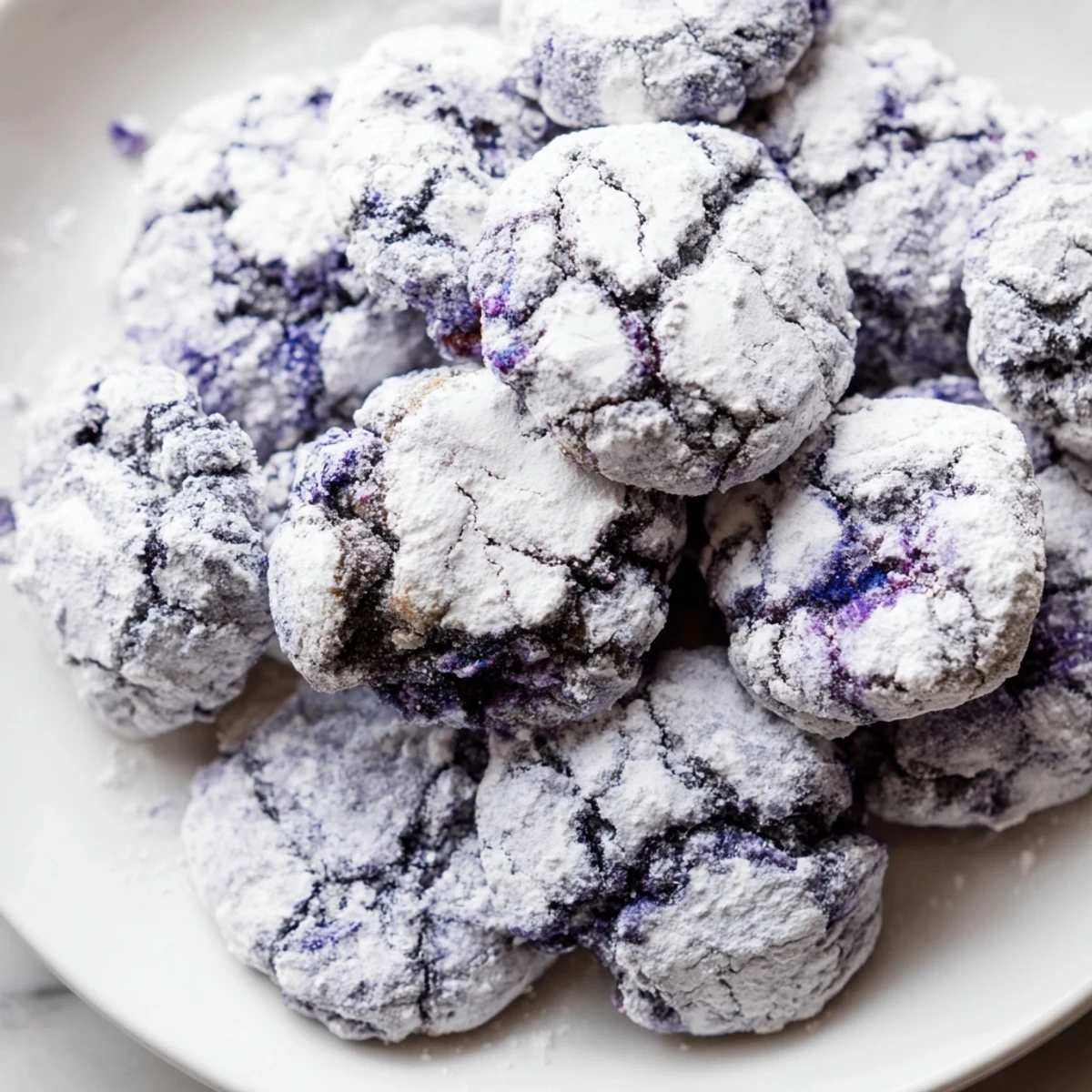 These delightful blueberry crinkle cookies combine soft, chewy textures with bursts of fresh fruit flavor. The signature crinkle appearance comes from rolling dough balls in powdered sugar before baking, creating beautiful cracks as they spread. Fresh blueberries are gently folded throughout the batter, while lemon zest enhances their natural sweetness. The dough requires an hour of chilling to maintain shape, resulting in thick, bakery-style cookies with crisp edges and tender centers.