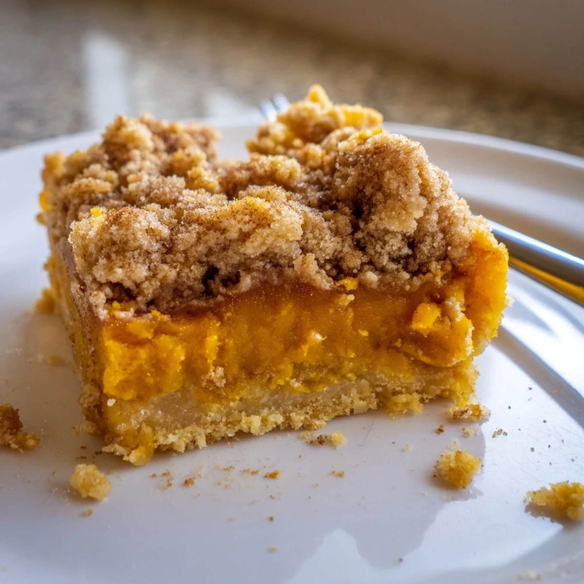 These indulgent bars combine three irresistible layers starting with a tender buttery crust pressed into the pan and briefly baked. The filling features smooth pumpkin puree sweetened with pure maple syrup and brown sugar, enhanced with warm pumpkin pie spice and vanilla. A generous crumbly streusel topping made with flour, brown sugar, cinnamon, and melted butter creates the perfect crunchy contrast to the creamy pumpkin layer beneath.