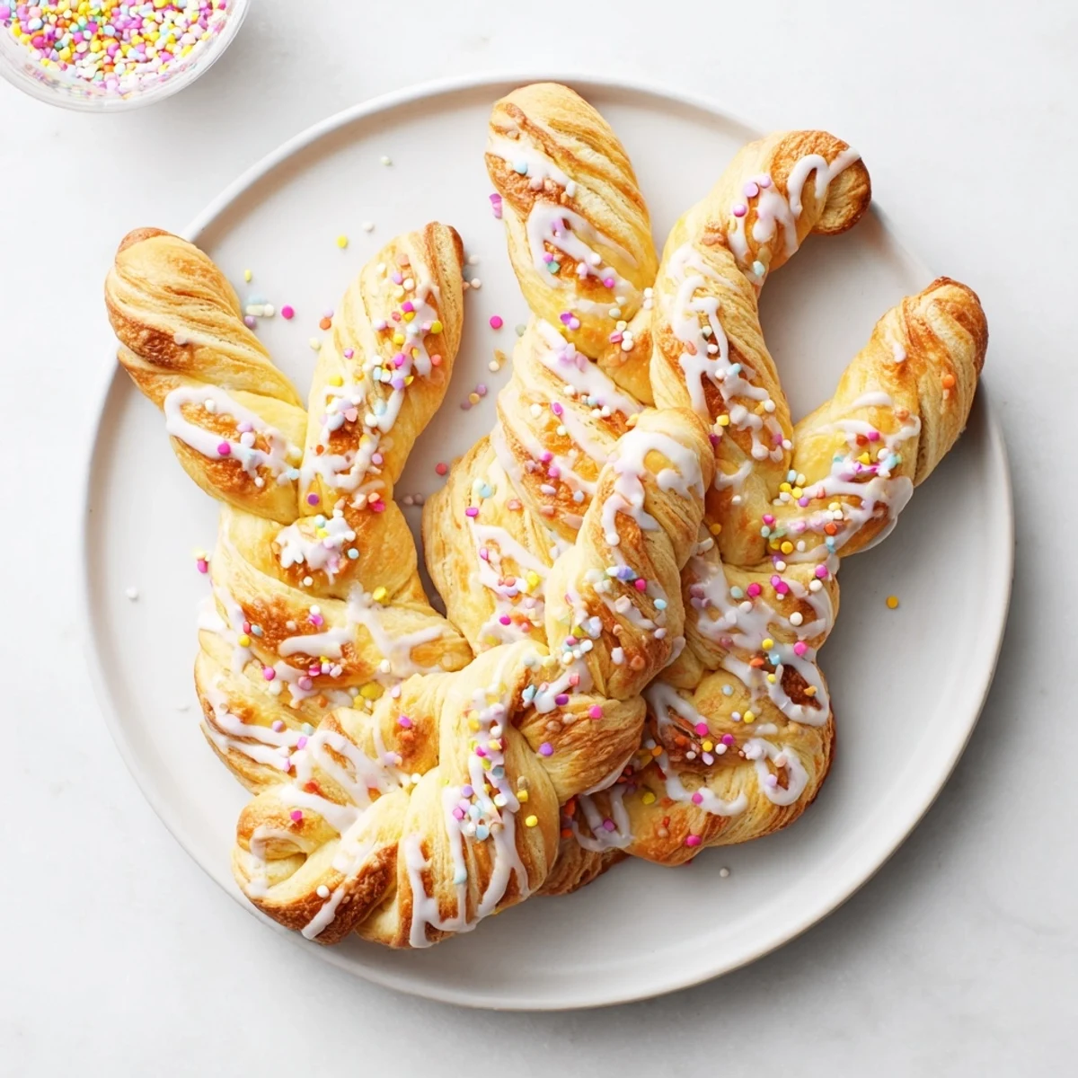 The kitchen smelled like butter and cinnamon when my niece walked in and asked if we were making something special. I had just unrolled puff pastry sheets across the counter, thinking about how something so simple could feel like magic when baked. She started twisting strips of dough into shapes without any instruction, creating these adorable earlike loops that made us both laugh. Now these bunny twists are our Easter morning tradition, disappearing faster than I can arrange them on the platter.