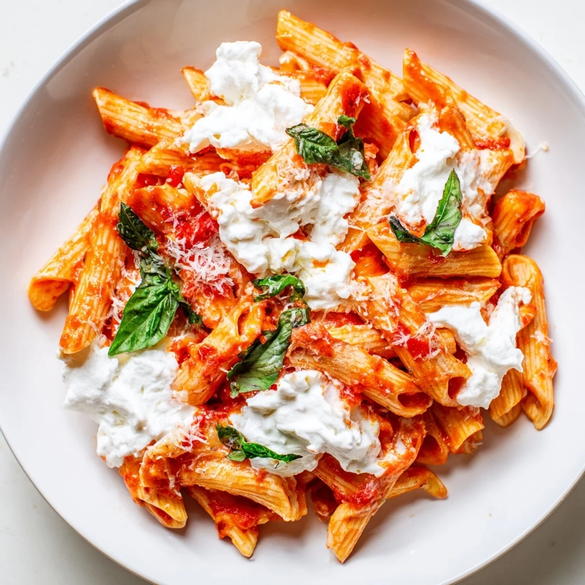 - Fold in the ricotta, half the basil, and Parmesan, letting the cheese melt just slightly into the warm pasta